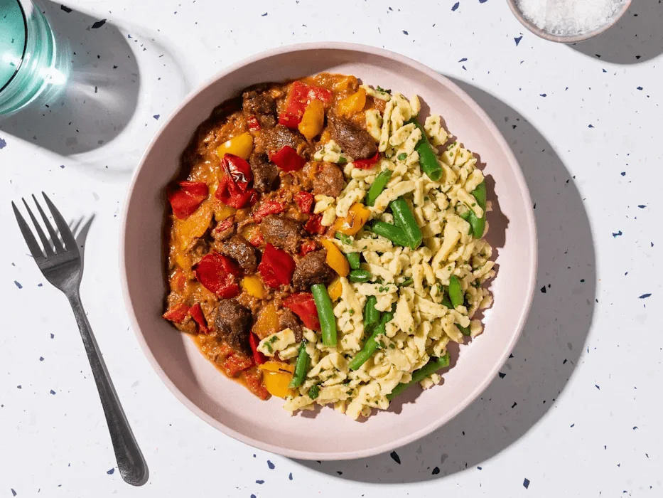 Probeer bijvoorbeeld onze smaakvolle Kruidenspaetzle met Goulash en Paprika of de Basmatirijst met Kip in Pindasaus twee herfstmaaltijden die je verwarmen én je van waardevolle voedingsstoffen voorzien om het seizoen goed door te komen!